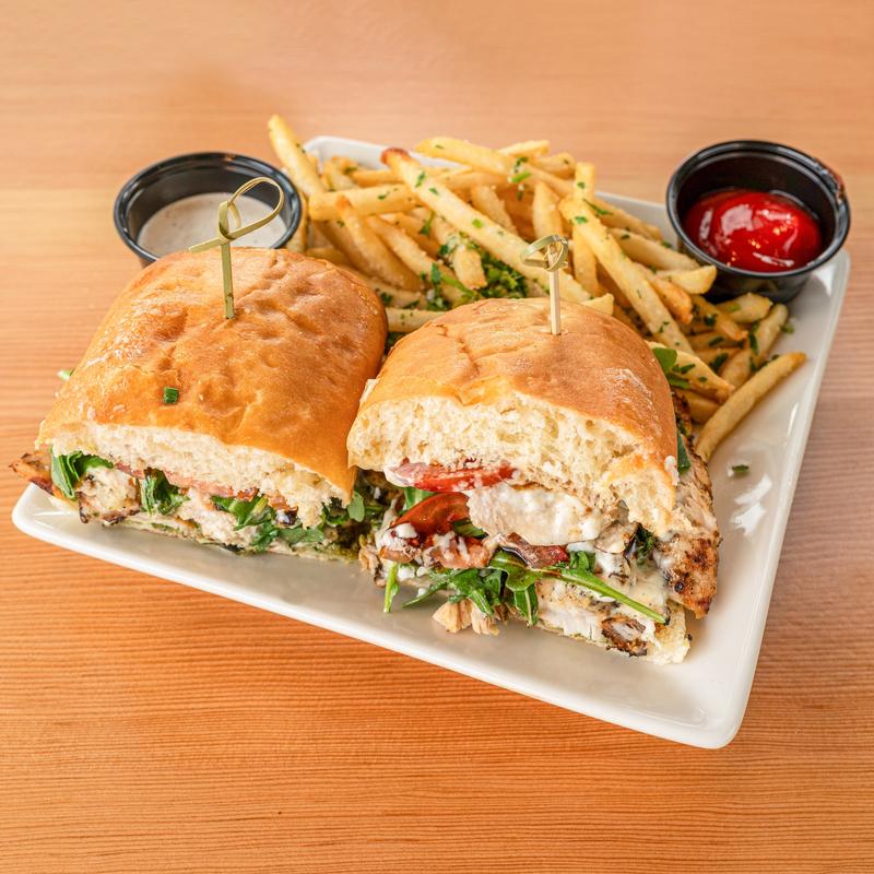 Grilled chicken breast, applewood bacon, iceberg lettuce with aioli, provolone cheese, lettuce, tomato and sliced avocado