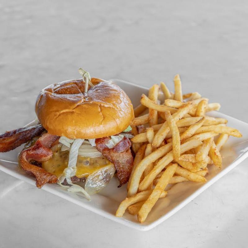Our CBR is topped with Bacon , Caramelized Onions, Rosemary Garlic Oil Base, Ranch Sauce, Chicken.