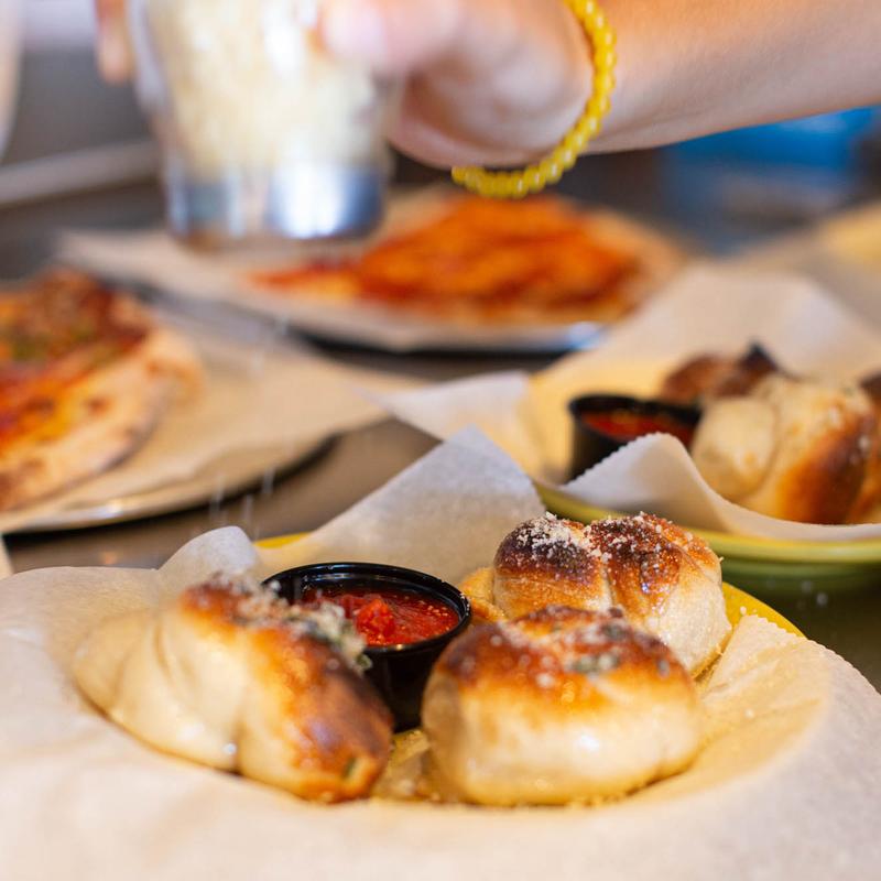 Three garlic knots served with your choice of ranch or marinara sauce