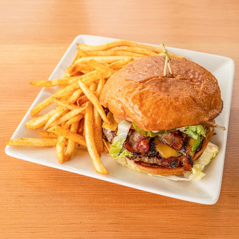 Wagyu beef with Tillamook cheddar cheese, grilled onions, lettuce, tomato, pickle, 1,000 island dressing on a brioche bun. Served with fries | Add Honey Cured Bacon $1.50 or Avocado $1.50