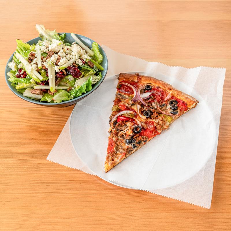 Any slice and a small Best House or Caesar Salad.