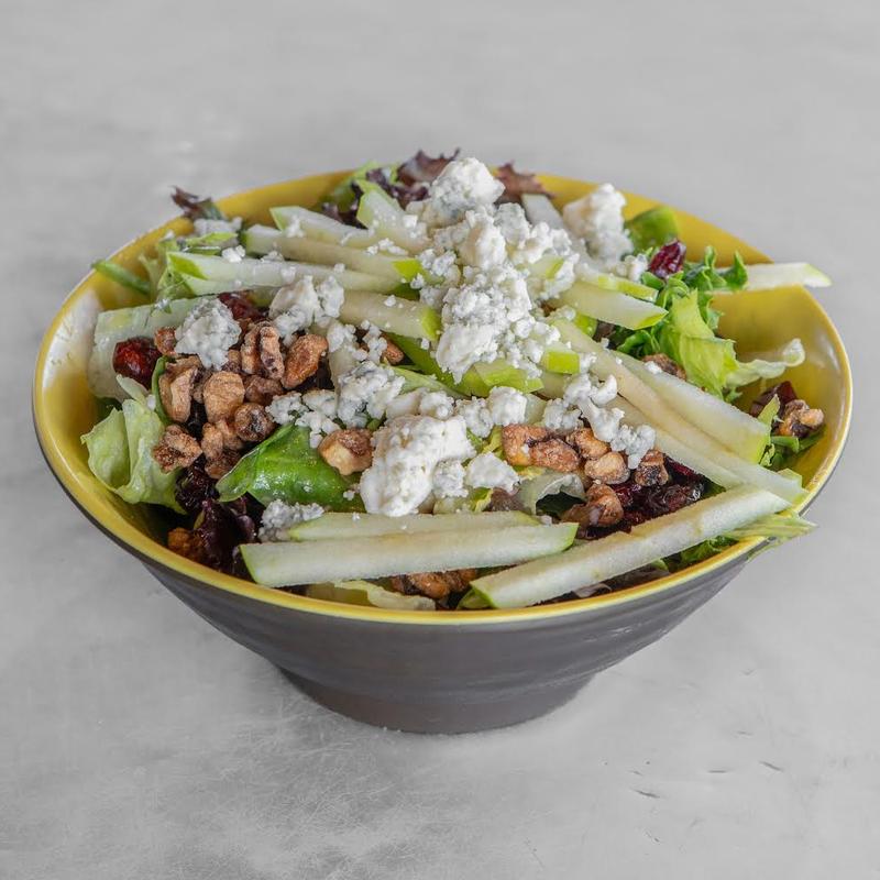 Mixed greens, dried cranberries, caramelized walnuts, apples and gorgonzola with